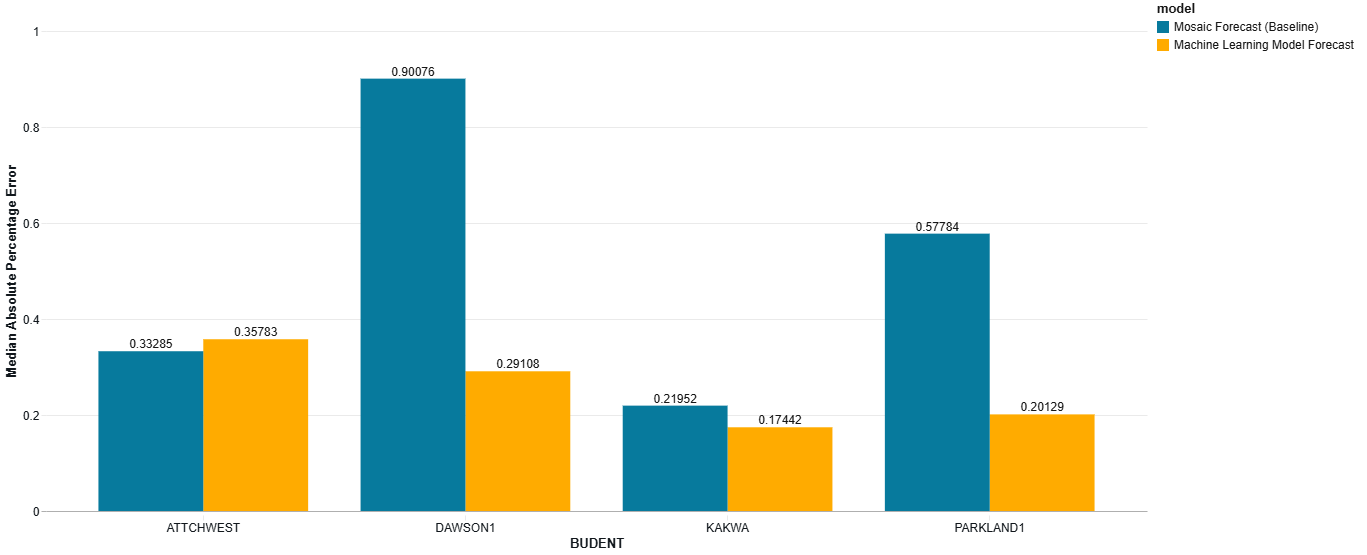 - The machine learning model demonstrates superior forecasting accuracy for water measurement in Dawson, Kakwa, and Parkland. In Attachie, performance is comparable to the baseline forecast at the time of writing this report; however, future model retraining could improve results for this field as more data becomes available.